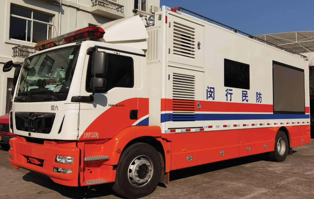 上海市闵行区国防动员办公室人防机动指挥车可实现多网系融合,车内仅用话筒即可与超短波集群、内外线电话、手机、IP 电话等开展组网会议;采用上海民防首例 5G VPN 通信系统,速度快、带宽高,行进中能稳定通信;配备 LTE 专网系统,实现现场无线覆盖,可传输语音、图像和数据;同时部署移动指挥与预案指挥系统,无网络时也能调取相关方案。