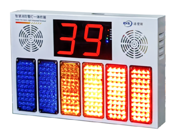 系统支持三色警灯组合显示五级警情,可播报灭火救援行动提醒及出动倒计时等内容。同时,设备可连接车辆状态感知终端,实现车辆离开车库自动停止播报。设备安装便捷、警示作用明显,在火警处置、抢险救援、应急演练等不同的业务场景中及时提醒值班人员警情情况并及时出动,有效提升消防出动速度,为消防战备工作及灭火救援提供装备支撑。