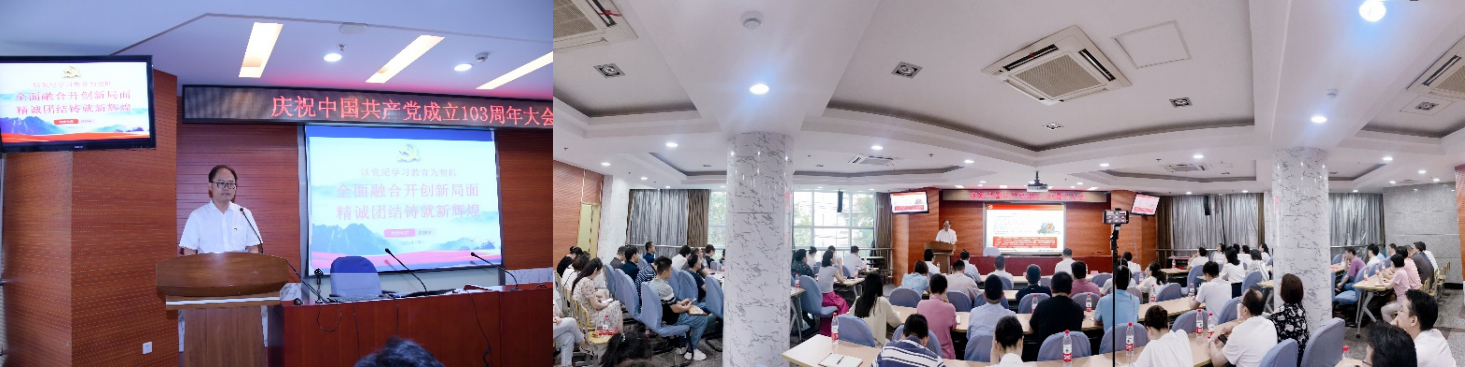 为庆祝中国共产党成立103周年,所党委、长江通信党委召开党员大会,党委书记、董事长邱祥平携两个党委班子全体成员出席会议,并以“以党纪学习教育为契机,全面融合开创新局面,精诚团结铸就新辉煌”为题讲授纪律党课、融合党课,党委副书记雷霆主持会议,党委副书记巴继东宣读表彰决定。