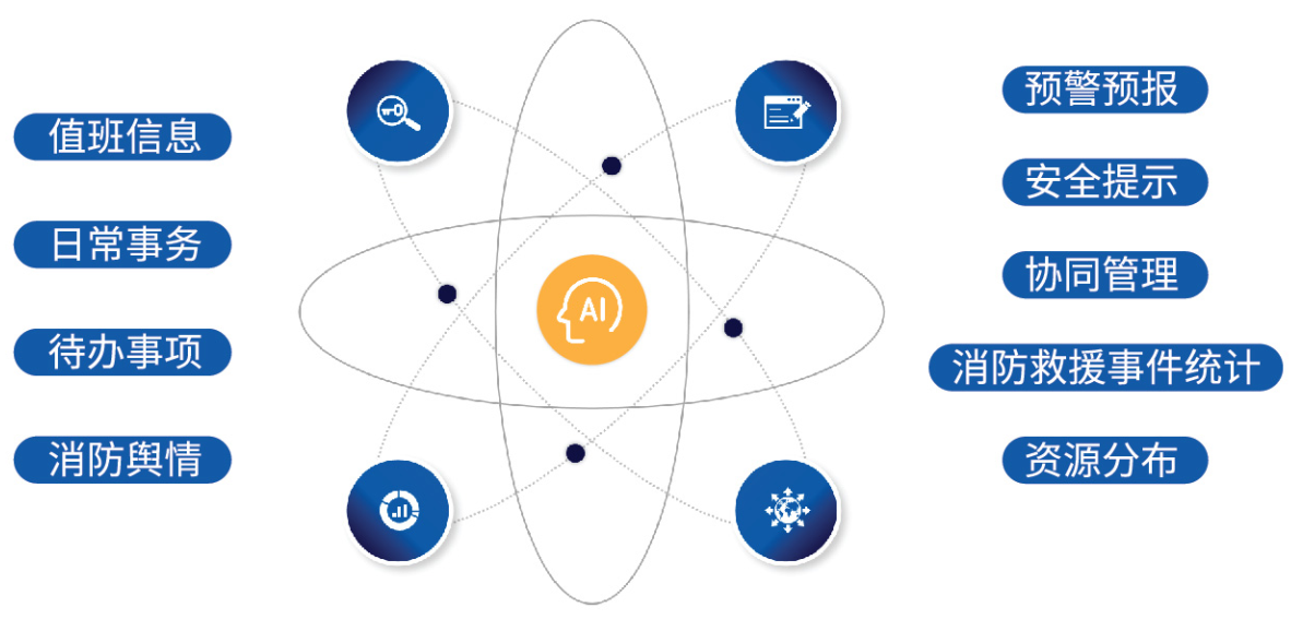 在消防事件发生时,适时向各级救援人员发送安全提醒、救援指令,向上级请示汇报,必要时向专家咨询,通报事件处置态势给各级消防机构和联勤联动单位,做到“快速响应、全局监控、精准指挥”。