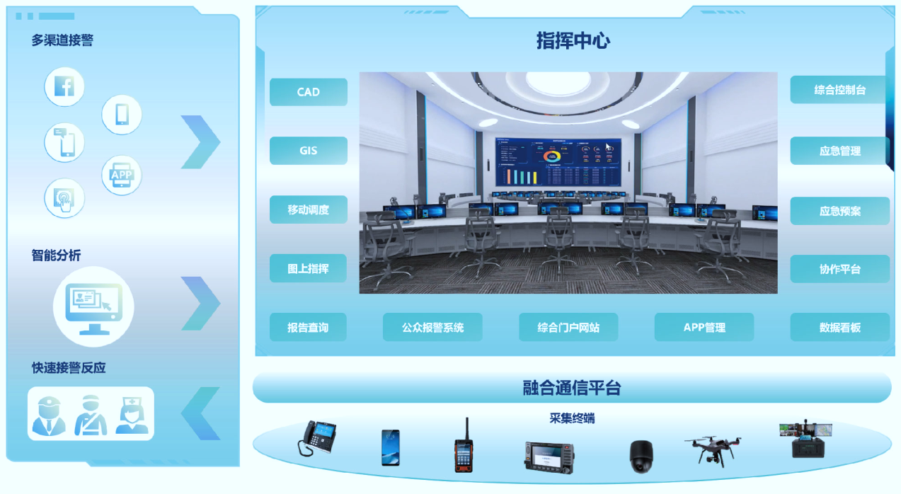平安城市应急指挥平台 ECC(Emergency Command Center)系统符合国际警务业务需求,通过接入多报警特服号,实现统一接警,统一指挥,联合行动,为市民提供紧急救援服务。通过系统的应用可以加强各警力单位之间的配合与协调,提供指挥中心至一线警力的可视化,平面化调度,从而对特殊、突发、应急和重要事件做出有序、快速而高效的反应。