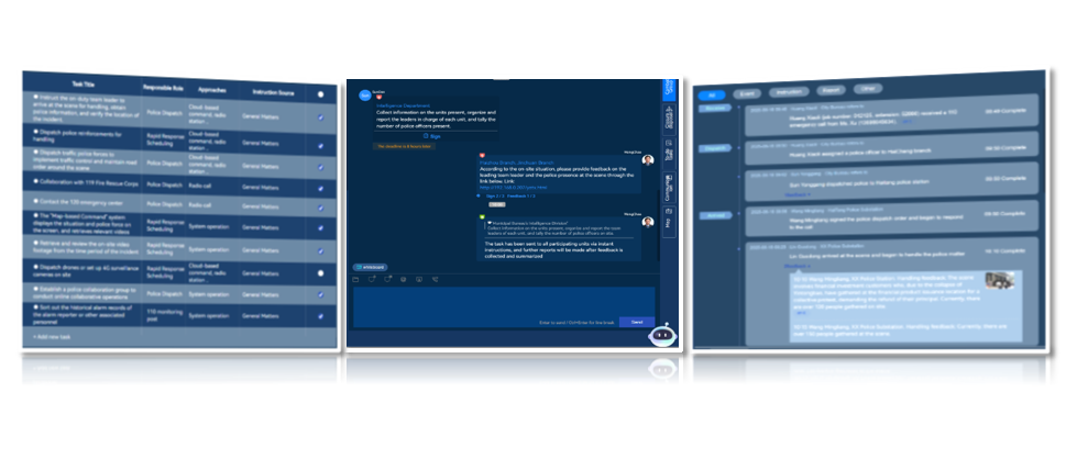 即时消息与处理过程绑定;多部门场景下亦可简单部署;基于警情事件创建沟通群组和处理流程。