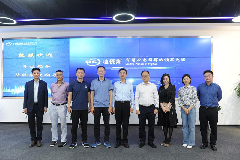 李副区长一行参观了公司智慧应急展厅,深入了解了公司的发展历程、业务发展模式等方面的情况,听取了公司关于“智慧城市大脑”的工作汇报。汇报从“一屏观天下、一网管全城”的建设思路着手,阐述了智慧大脑架构体系,以政务云超算中心、城市运行管理中心为两翼支撑,AI大数据、时空孪生、物联网、视联网为引擎驱动,打造高精感知、高频认知、智行合一的大数据应用支撑平台,进一步完善社会治理体系和治理能力的现代化和智能化。李副区长充分肯定了迪爱斯公司在智慧城市建设和应急领域的专业化水平,并对迪爱斯公司的发展寄予了厚望,鼓励迪爱斯公司要不断提升自主创新能力,优化产业升级,为社会的长治久安贡献科技力量。