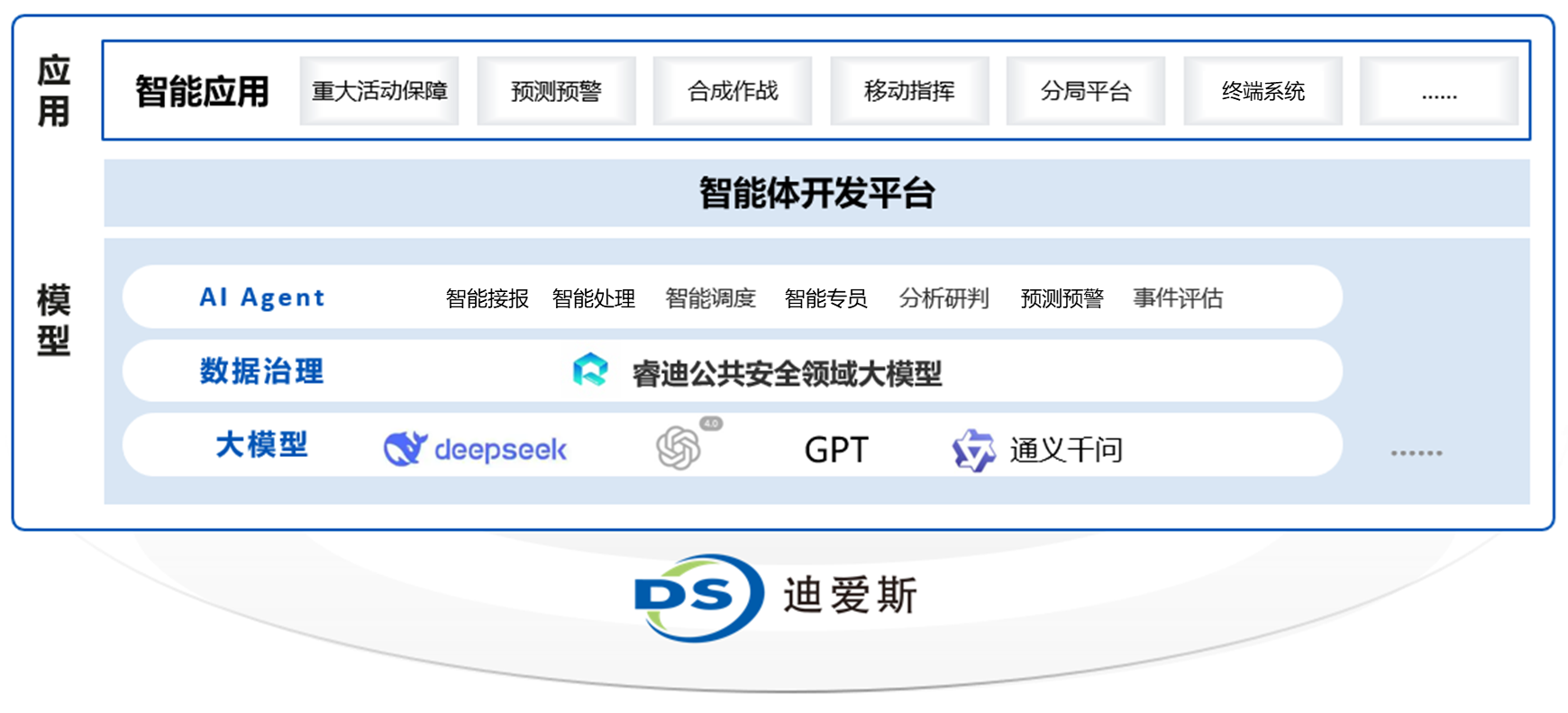 该方案依托华为强大的算力、存力、运力及通信支撑底座,融合迪爱斯自主研发的场景化 AI 智能辅助决策模块,包括智能接警、智能处警、智能调度、数字警员、分析研判、预测预警、事件评估等智能体,构建覆盖 “事前预防-事中处置-事后评估” 的全流程智能化指挥体系,可支撑重大活动保障、合成作战、移动指挥等多元警务应用,为公共安全治理提供高效、精准的智能决策辅助,提升警务指挥全链路处置效率。