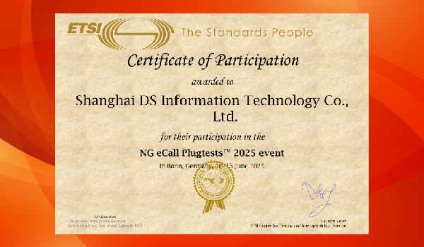 贺报!迪爱斯公司喜获NG eCall Plugtest 2025认证证书...