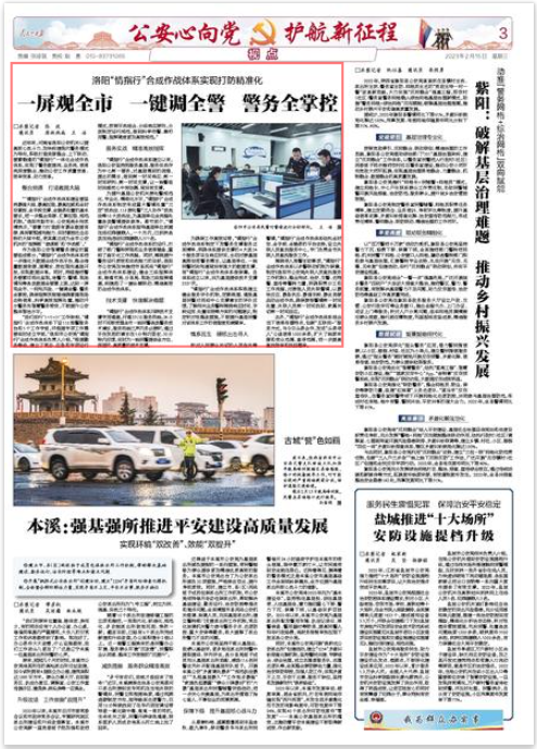 近日,迪爱斯公司参与建设的洛阳情指行合成作战平台在《人民公安报》以《一屏观全市 一键调全警 警务全掌控》为题进行深度报道。
